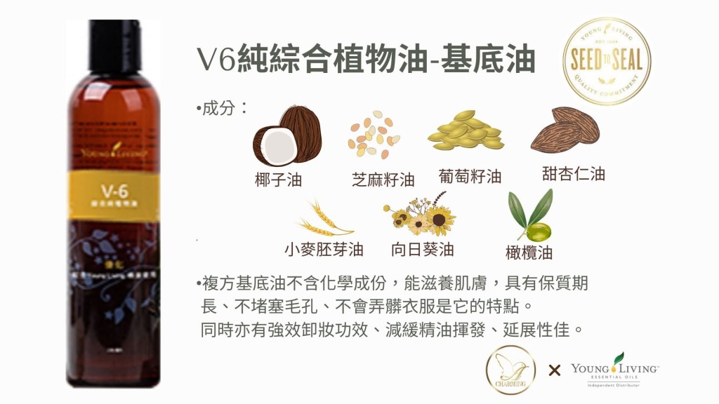 - 可搭配V-6®配方植物油,用來進行全身、臉部和心輪按摩。