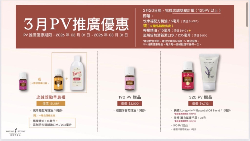 📍適用於標準訂單及忠誠獎勵訂單(LR)📍贈品數量有限,送完將以等值 PV 贈品替換📍每帳號每月限獲得一次 PV 推廣優惠贈品